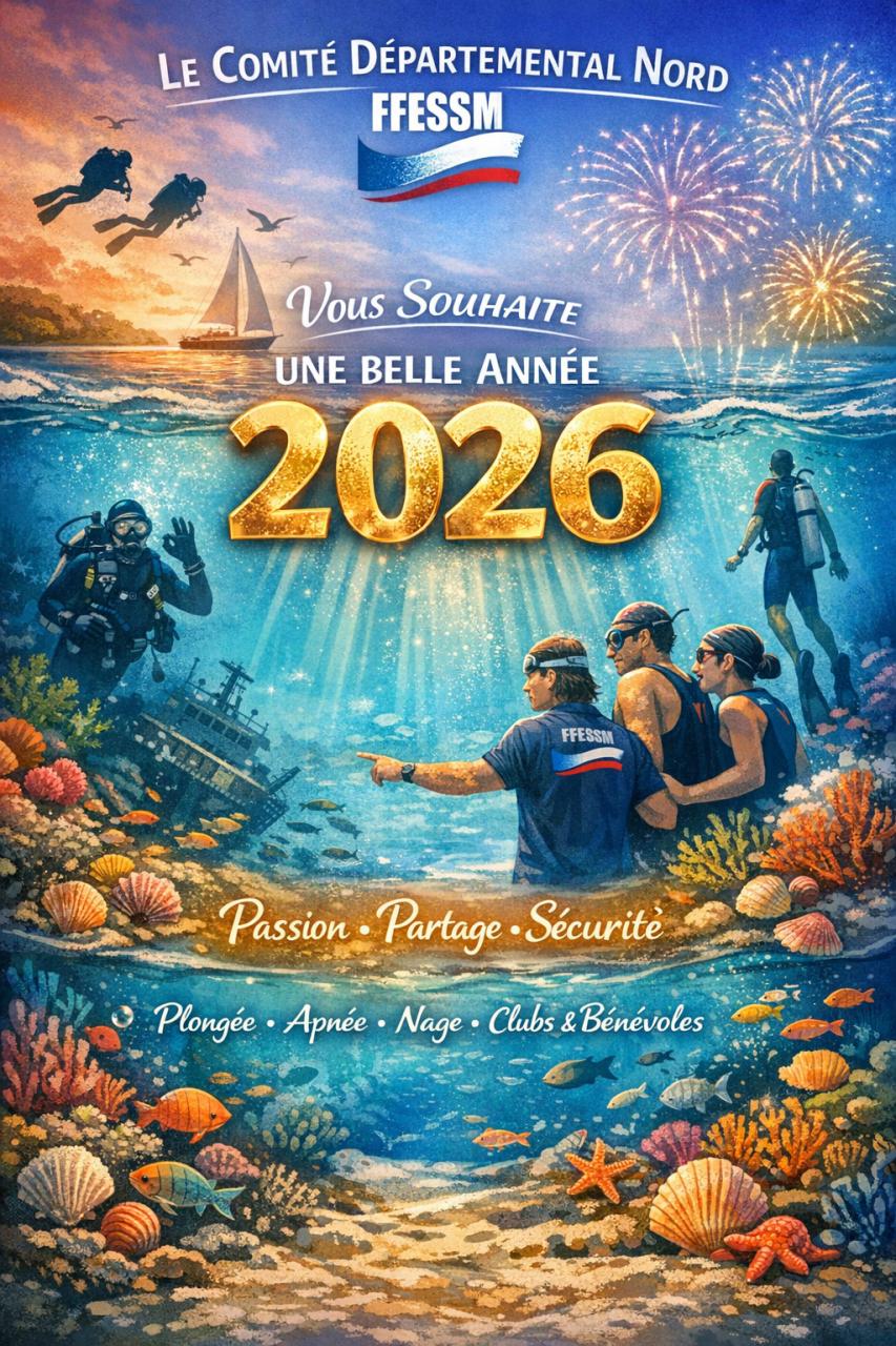 À l’aube de cette nouvelle année 2026, l’ensemble des membres du Comité Départemental Nord de la FFESSM, ainsi que moi-même, vous adressons nos vœux les plus sincères.